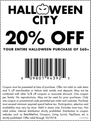 Save up to 25% off with coupon. Today's top halloween city coupons & promo codes discount: Web finding halloween express promo codes. Dzmind coupons & promo codes. Ad halloween store coupons, find a great collection of halloween store coupon offers.